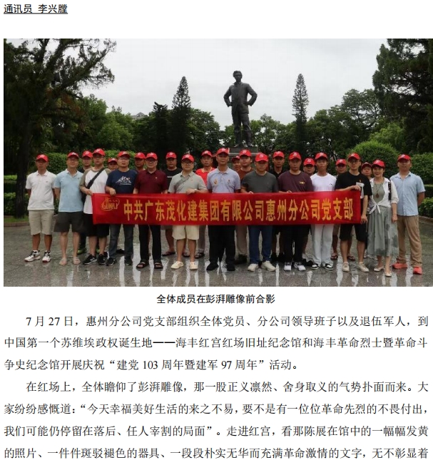 惠州分公司黨支部開(kāi)展慶?!敖h103周年暨建軍97周年”活動(dòng)
