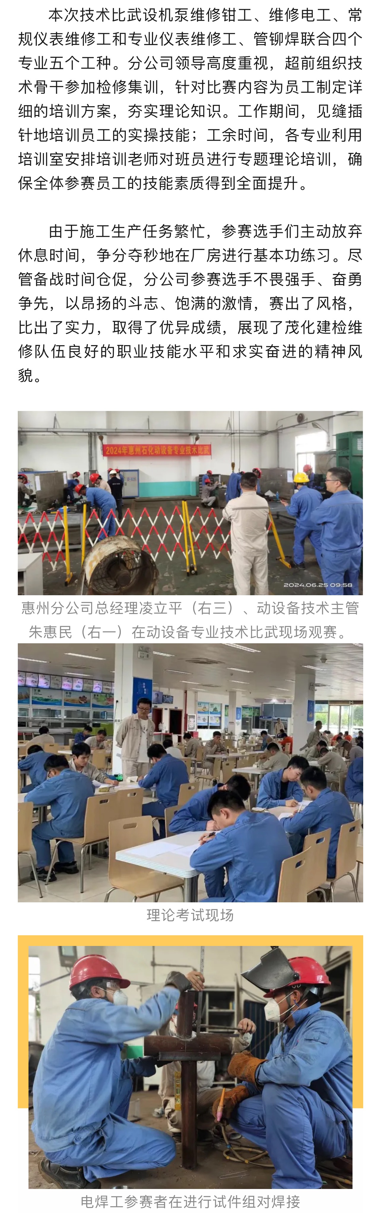 喜訊:惠州分公司在惠州石化維保單位技能維修工種技術(shù)比武中獲佳績(jī)