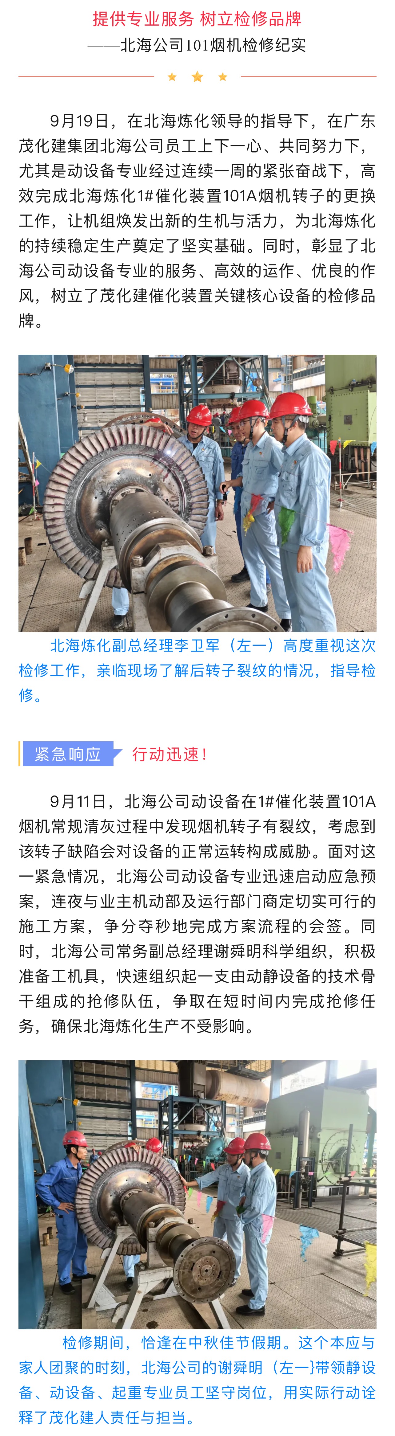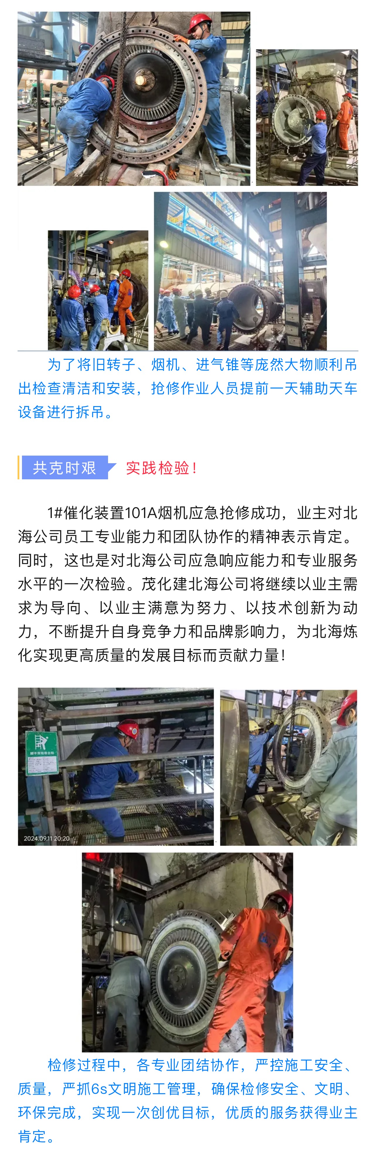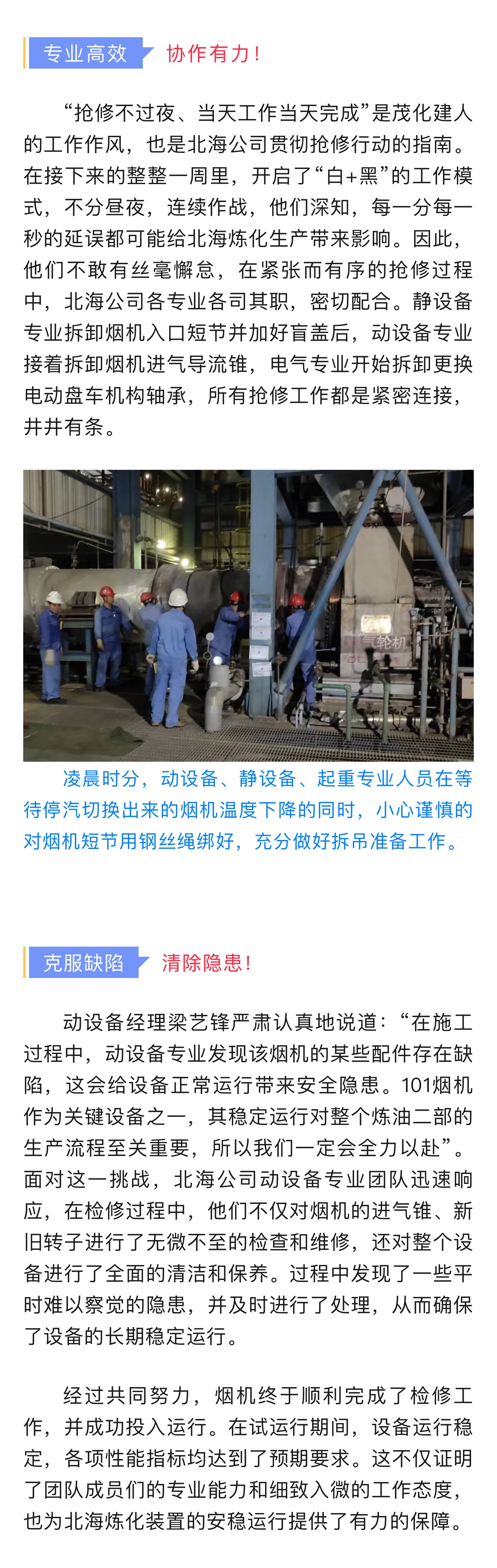 北海公司101煙機(jī)檢修紀(jì)實(shí)