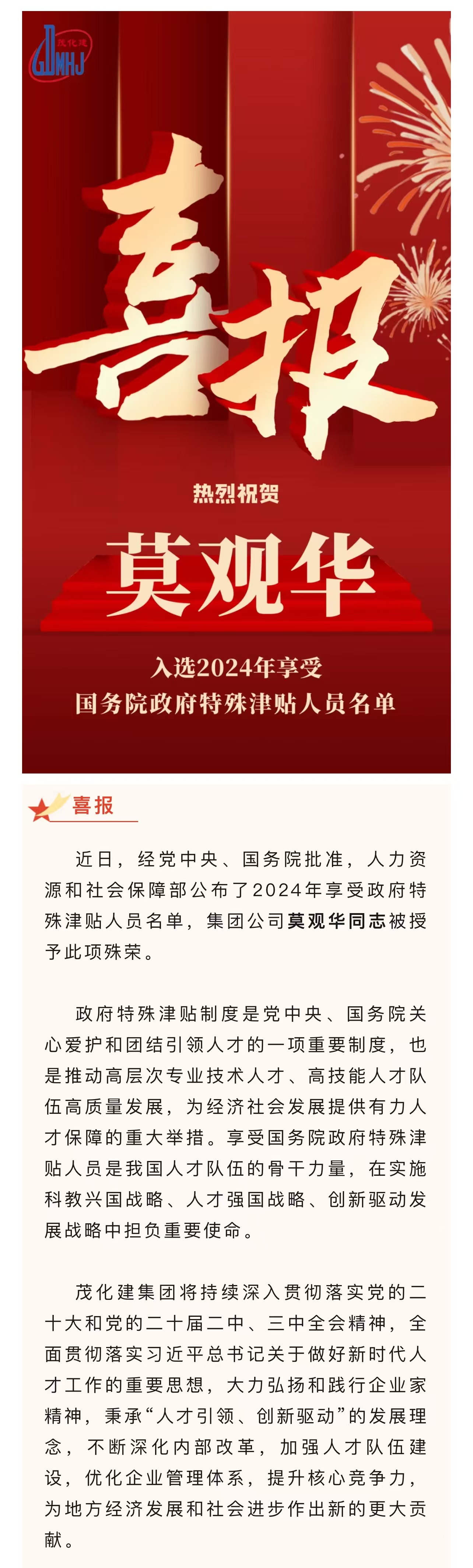 喜報(bào):莫觀華入選享受國(guó)務(wù)院政府特殊津貼人員名單
