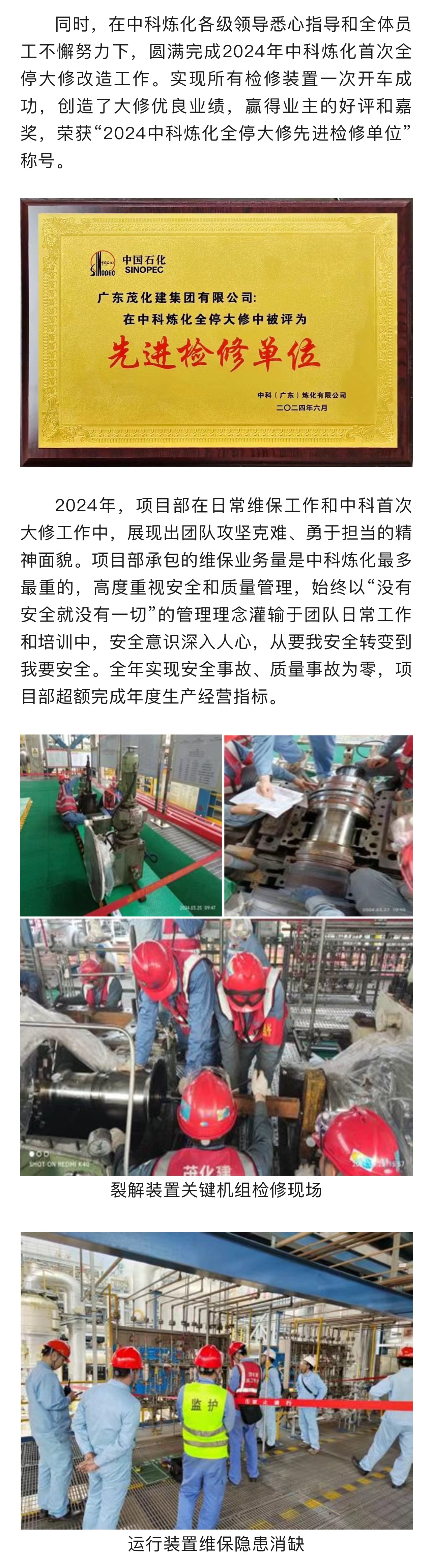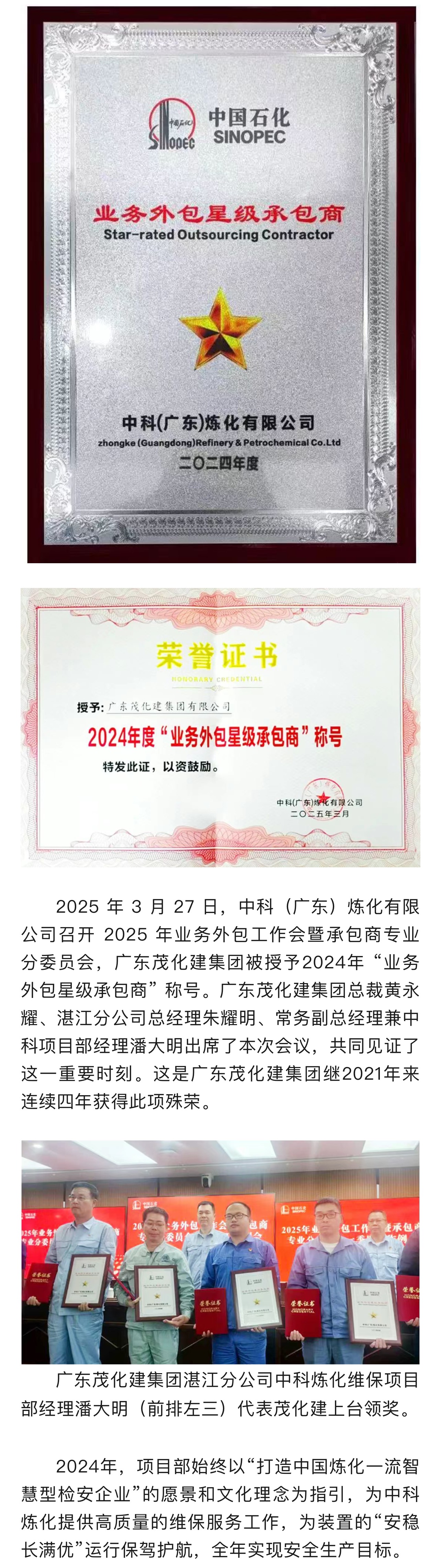 喜報|榮獲2024年中科煉化 “業(yè)務(wù)外包星級承包商”稱號