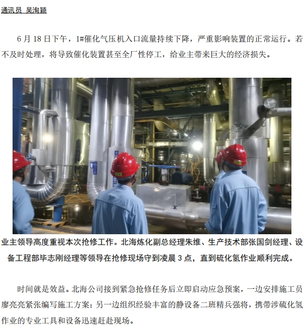 北海公司:5 小時(shí)高效搶修,力保催化裝置穩(wěn)定運(yùn)行