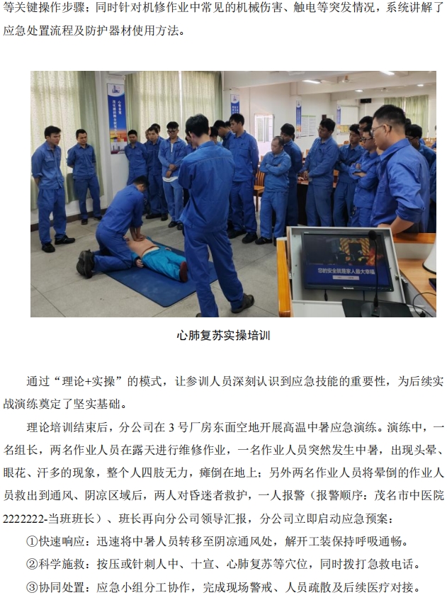 煉油機修分公司開展應急技能培訓及高溫中暑應急演練