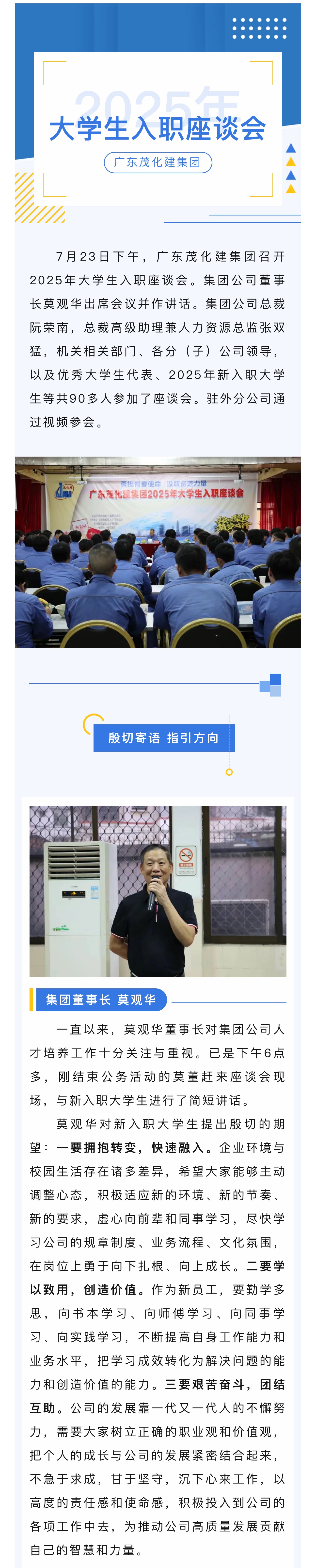 集團(tuán)公司召開2025年大學(xué)生入職座談會