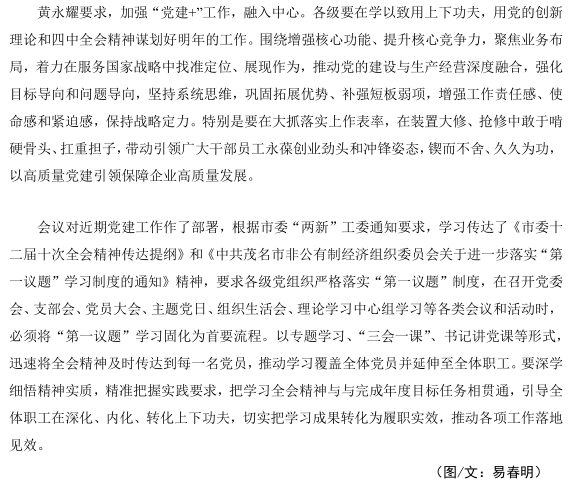 集團(tuán)公司召開支部書記會議 學(xué)習(xí)貫徹黨二十屆四中全會精神宣講動員