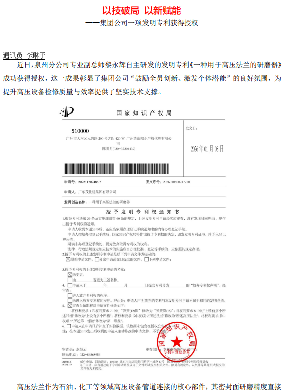 以技破局 以新賦能——集團(tuán)公司一項(xiàng)發(fā)明專利獲得授權(quán)